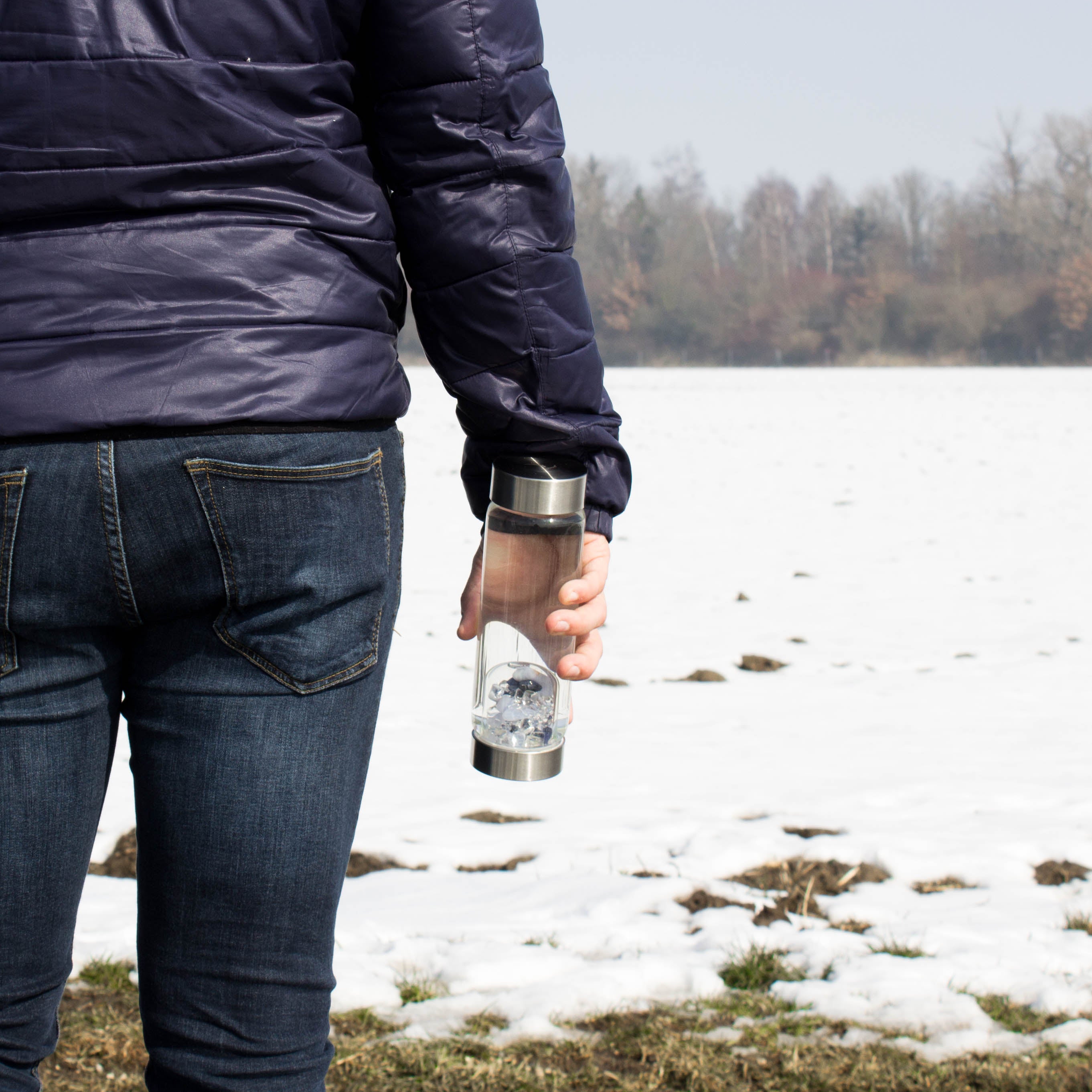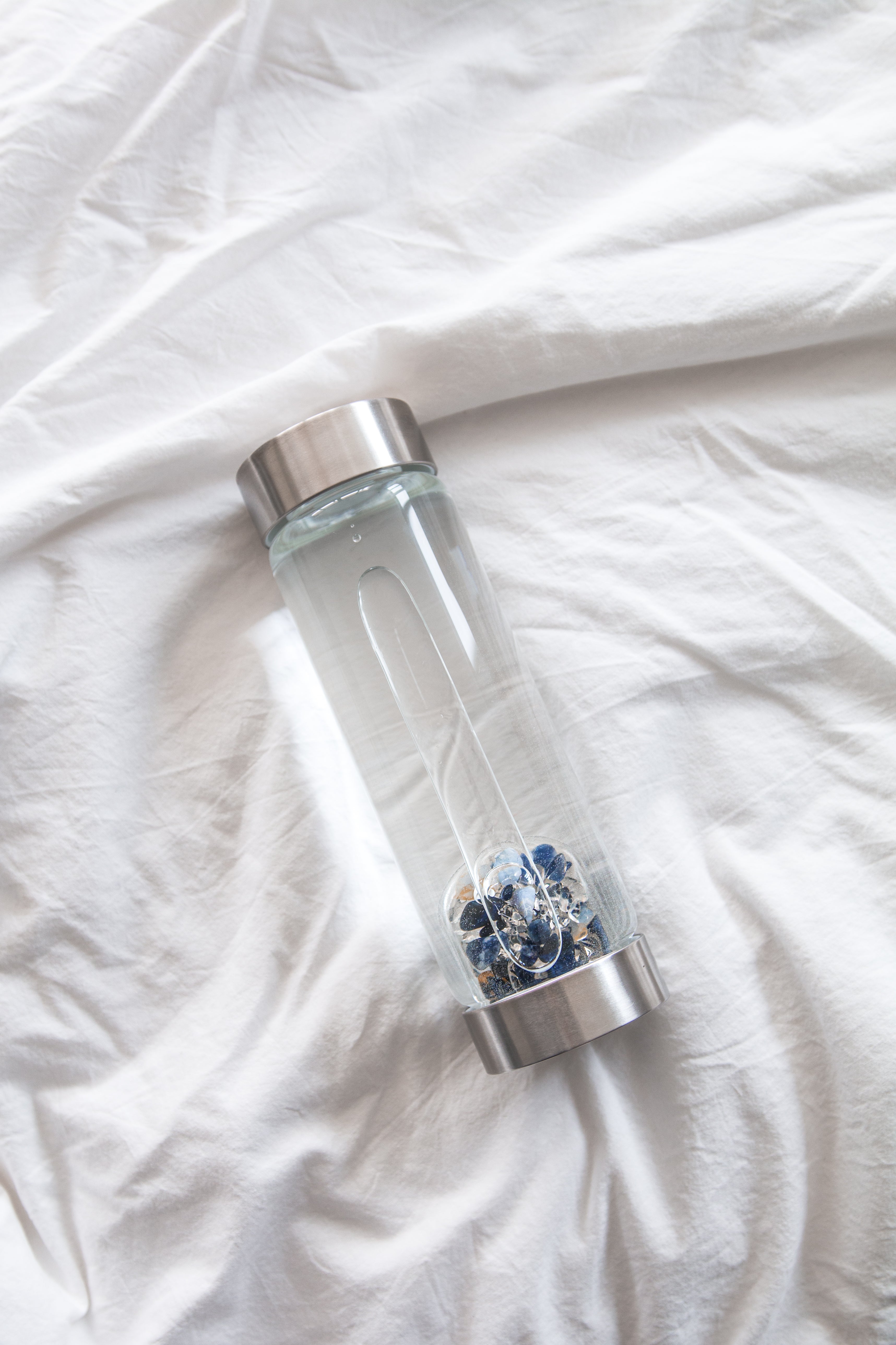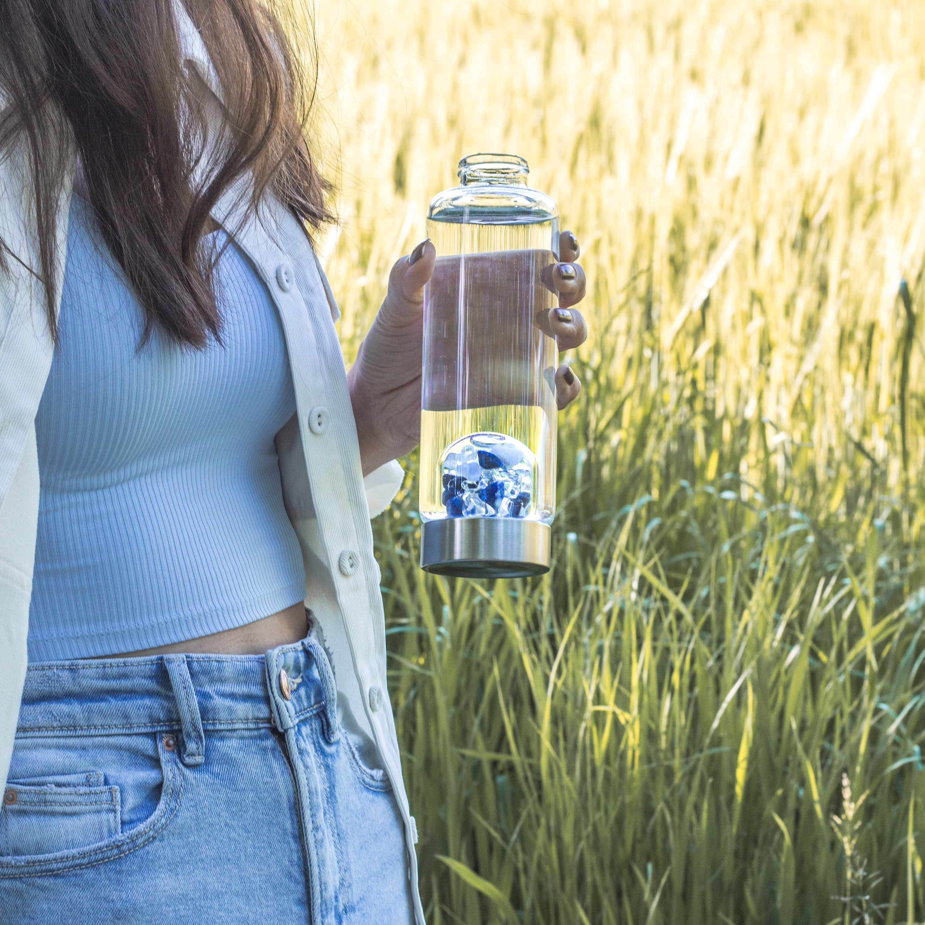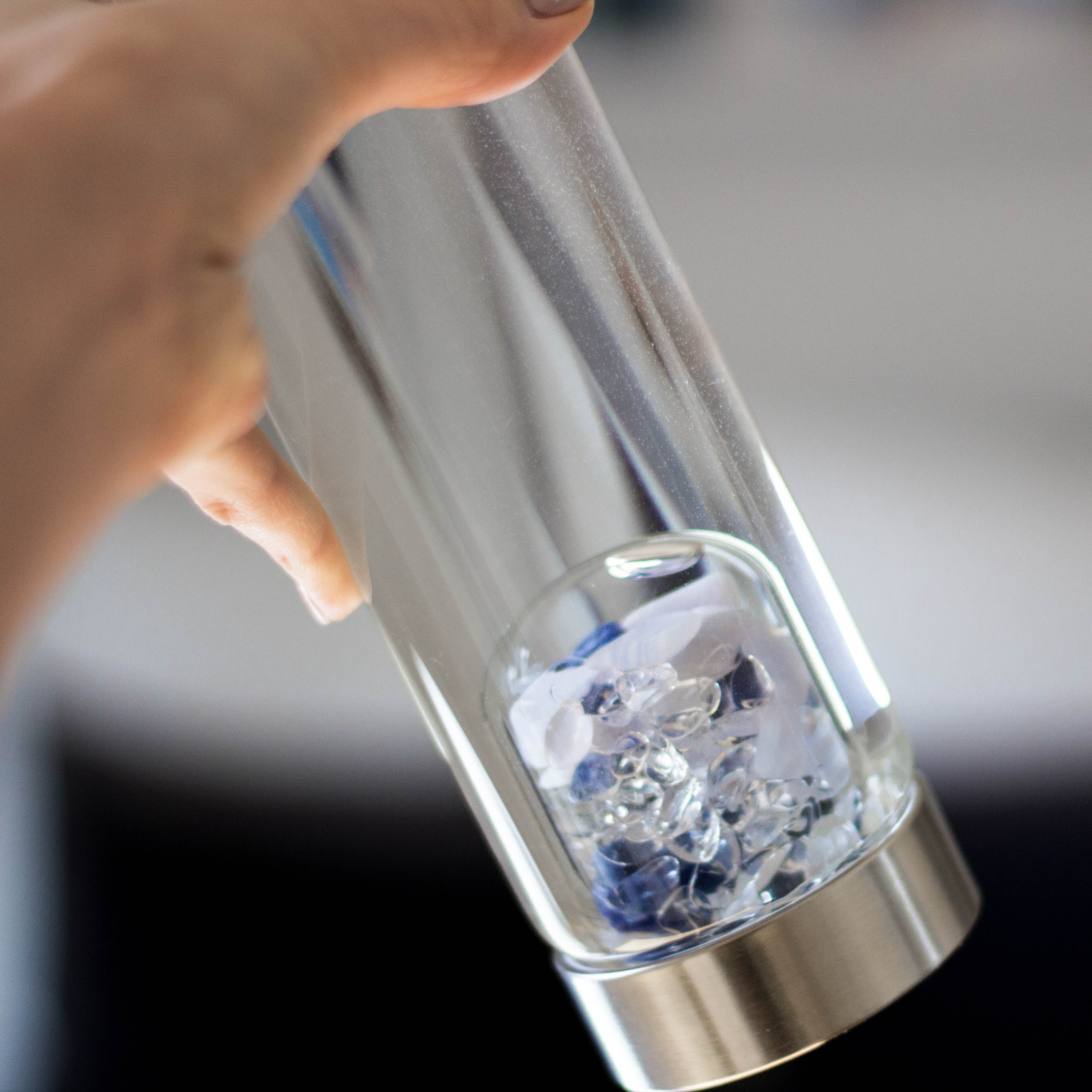 VitaJuwel ViA BALANCE | Crystal Water Bottle with Sodalite, Chalcedony & Clear Quartz for Inner Peace, Reflection & Meditation