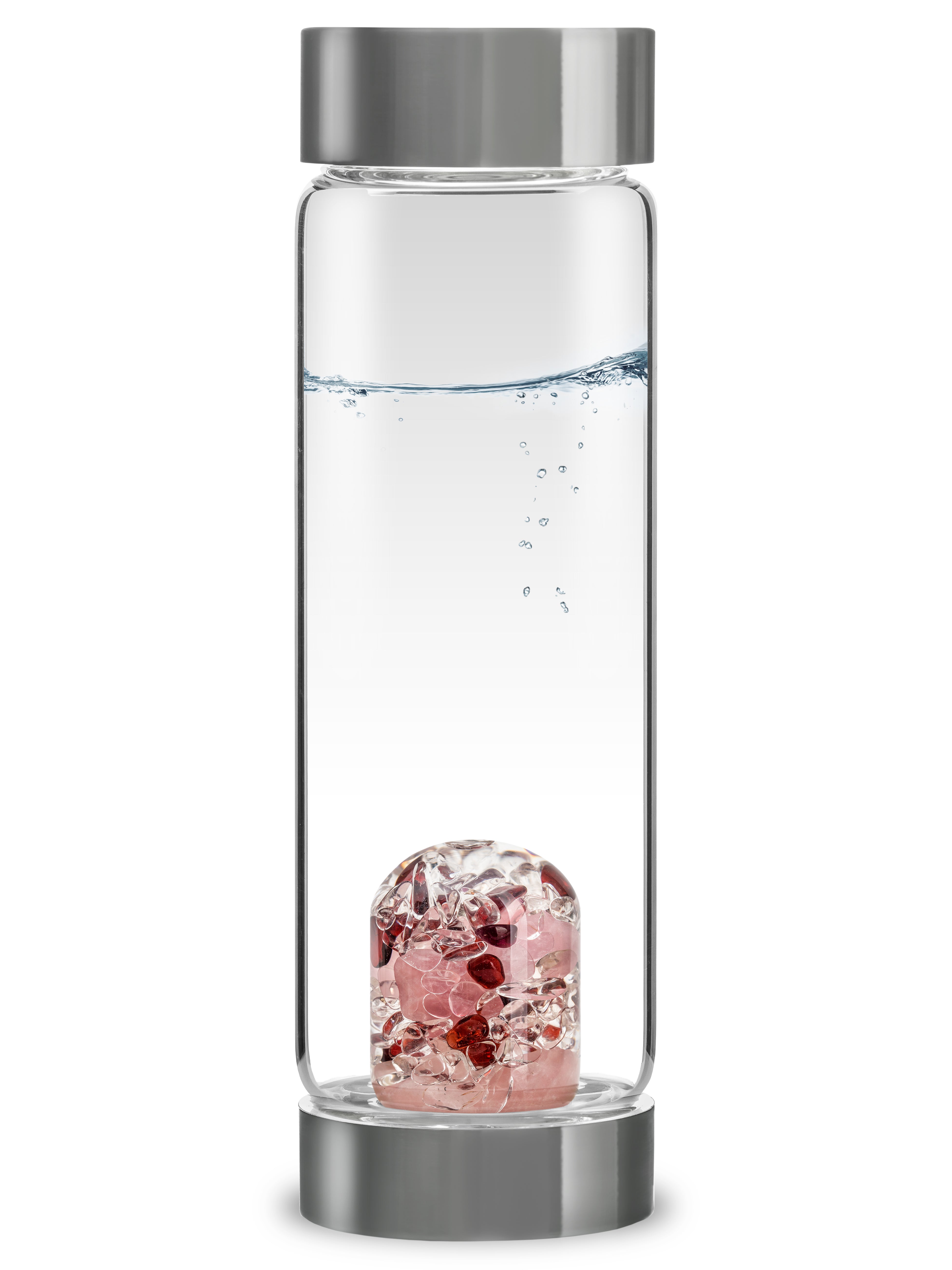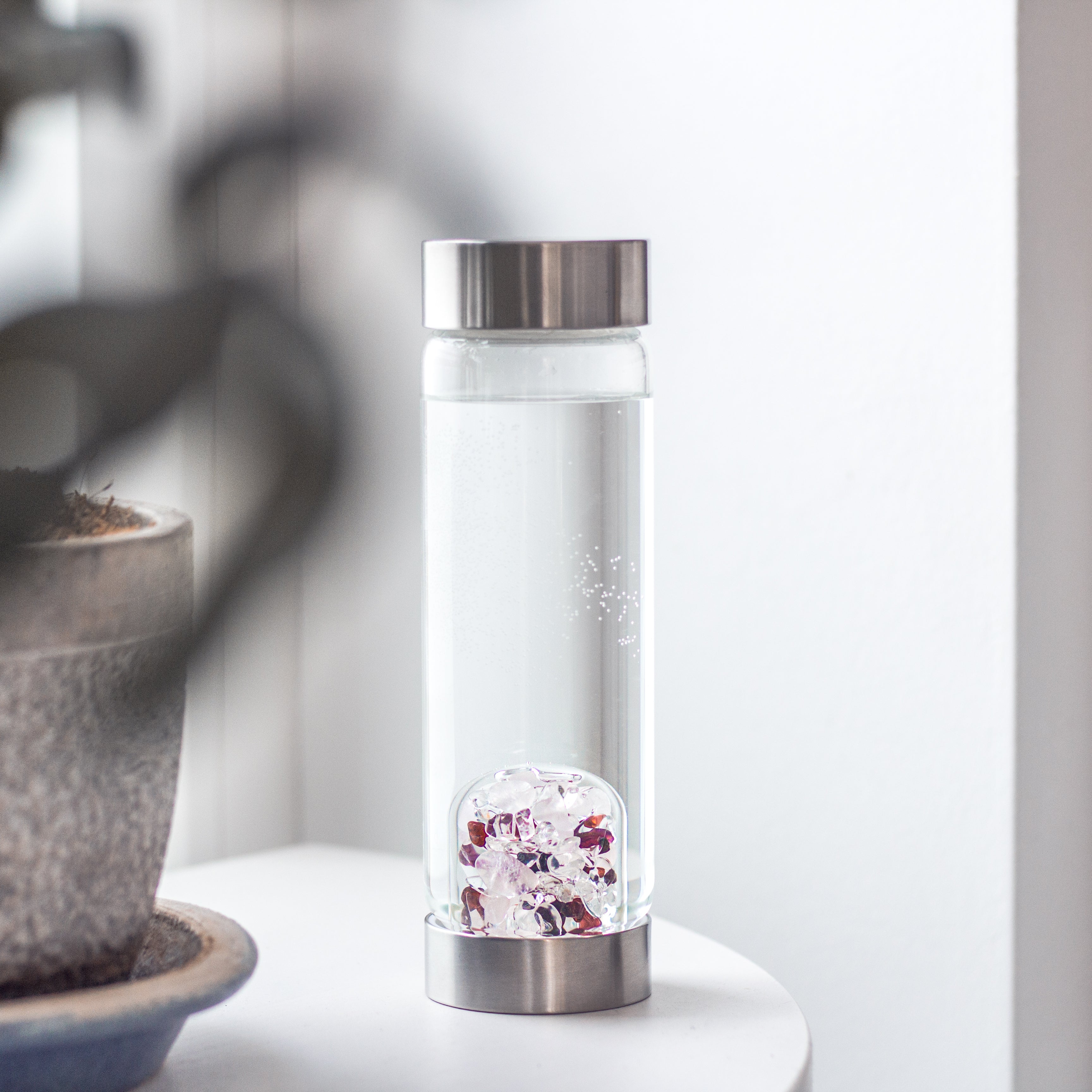 VitaJuwel ViA LOVE | Crystal Water Bottle with Rose Quartz, Garnet & Clear Quartz for Harmony, Affection & Affection